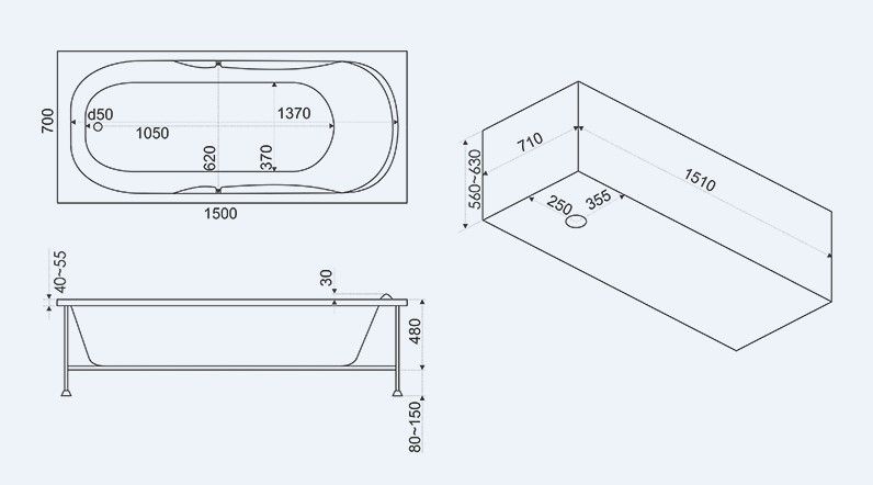 - Размеры: 1500 х 700 мм