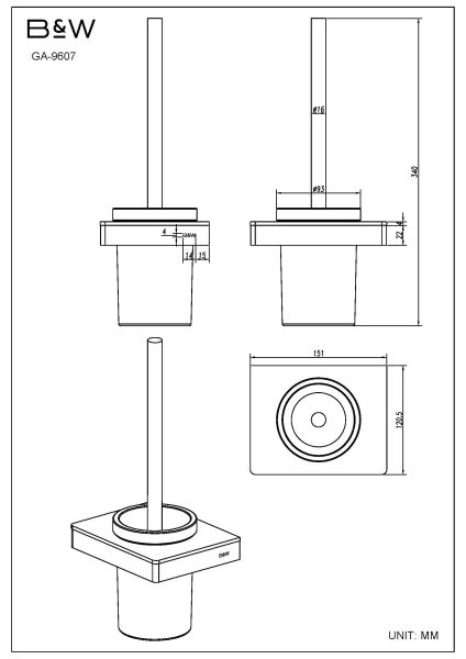 Держатель для ёршика Black and White Gravity 9607GM Темно-серыйКоллекция выполнена в двух цветовых решениях CHROME и GUN METAL. Благодаря использованию закаленного стекла, каждая деталь аксессуара приобретает свое уникальное отражение. В цветовом решении GUN METAL используется черное стекло. Для удобства пользования, на концах держателя для туалетной бумаги использованы стопоры, которые не позволяют рулоны слетать при использовании. Коллекция выполнена из надежных материалов: латунь и закаленное стекло, именно это позволяет не беспокоиться о надежности и увеличенном сроке службы каждого изделия.