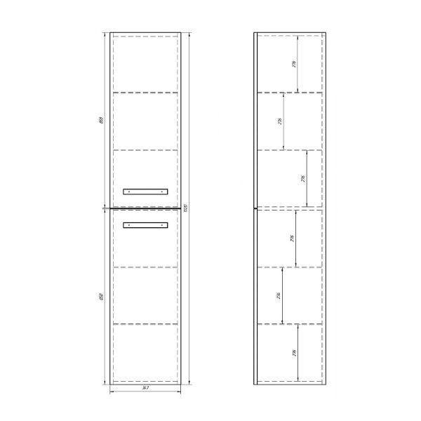 Пенал для коллекций Alfa, Almi. Фасад белый лак МДФ. Стеклянные полки с возможностью перестановки полок по высоте. Подвесной/напольный. В комплект для установки на пол нужно докупить ножки QL. Левый/Правый (перевешиваются дверцы)