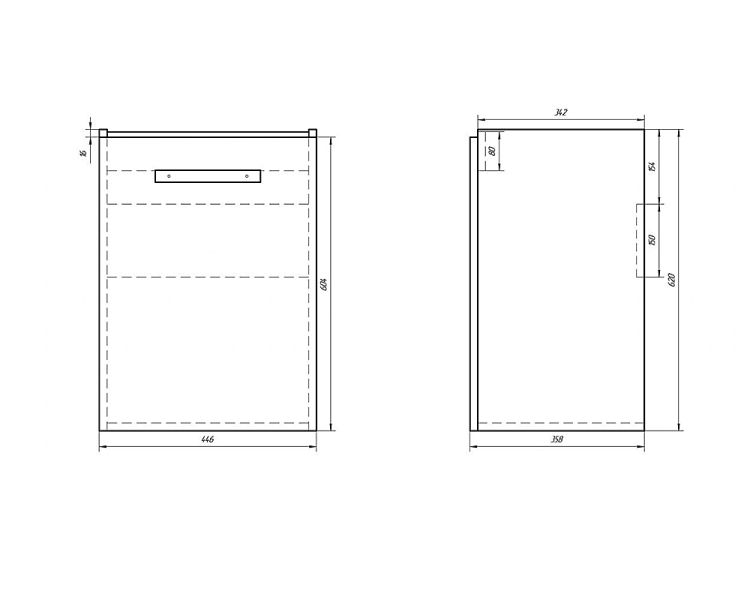 Подвесная/напольная тумба для небольших ванных комнат Лаконичный дизайн, глянцевая поверхность фасада, механизмы Hettich. Небольшая глубина тумбы органично впишется в любую, даже небольшую ванную комнату. Глубокий ящик