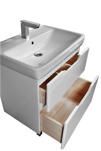 Напольная коллекция Идеально вписывается в любой интерьер ванной комнаты, глянцевая поверхность фасада. Хромированные регулируемые передние ножки в комплекте. В комплект можно докупить зеркальные шкафы, пенал, полупенал. Верхний ящик с органайзером