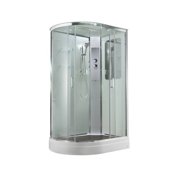 Стильная душевая кабина AvaCan сочетает в себе высокую функциональность, практичность и надежность. При изготовлении применяется безопасное закаленное стекло, надежно фиксируемое алюминиевым профилем. Профиль сделан из алюминия повышенной прочности. Сборка без силикона (увеличивает срок службы, защищает от протечек), внутренняя сборка (облегчает установку и ревизию; позволяет установить в ограниченном пространстве и обойтись без демонтажа других сантехнических приборов), смеситель резьбовой (без хомутов). Двойные металлические ролики дверей (распределение нагрузки на два ролика, увеличивают срок службы). Душевая штанга(позволяет регулировать по высоте ручную лейку), ручная арома-лейка с витамином С (картридж в комплекте,есть возможность замены или удаления картриджа), полочки(из стекла, с ограничителем), сифон с гидрозатвором.