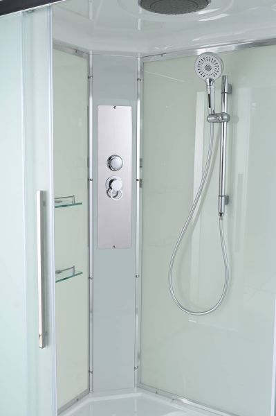 Стильная душевая кабина AvaCan сочетает в себе высокую функциональность, практичность и надежность. При изготовлении применяется безопасное закаленное стекло, надежно фиксируемое алюминиевым профилем. Профиль сделан из алюминия повышенной прочности. Сборка без силикона (увеличивает срок службы, защищает от протечек), внутренняя сборка (облегчает установку и ревизию; позволяет установить в ограниченном пространстве и обойтись без демонтажа других сантехнических приборов), смеситель резьбовой (без хомутов). Съемный экран поддона (позволяет осуществлять подключение и ревизию сифона).Двойные металлические ролики дверей (распределение нагрузки на два ролика, увеличивают срок службы). Душевая штанга(позволяет регулировать по высоте ручную лейку), ручная арома-лейка с витамином С (картридж в комплекте,есть возможность замены или удаления картриджа), полочки(из стекла, с ограничителем), сифон с гидрозатвором.