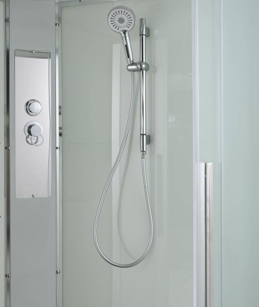 Стильная душевая кабина AvaCan сочетает в себе высокую функциональность, практичность и надежность. При изготовлении применяется безопасное закаленное стекло, надежно фиксируемое алюминиевым профилем. Профиль сделан из алюминия повышенной прочности. Сборка без силикона (увеличивает срок службы, защищает от протечек), внутренняя сборка (облегчает установку и ревизию; позволяет установить в ограниченном пространстве и обойтись без демонтажа других сантехнических приборов), смеситель резьбовой (без хомутов). Съемный экран поддона (позволяет осуществлять подключение и ревизию сифона).Двойные металлические ролики дверей (распределение нагрузки на два ролика, увеличивают срок службы). Душевая штанга(позволяет регулировать по высоте ручную лейку), ручная арома-лейка с витамином С (картридж в комплекте,есть возможность замены или удаления картриджа), полочки(из стекла, с ограничителем), сифон с гидрозатвором.