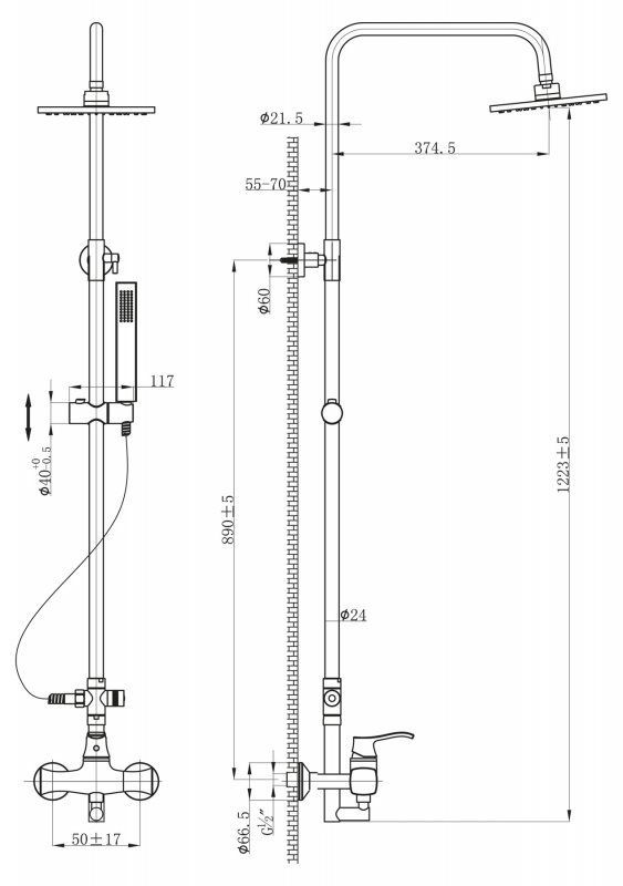 Дополнительная информация: регулируемая высота верхнего душа