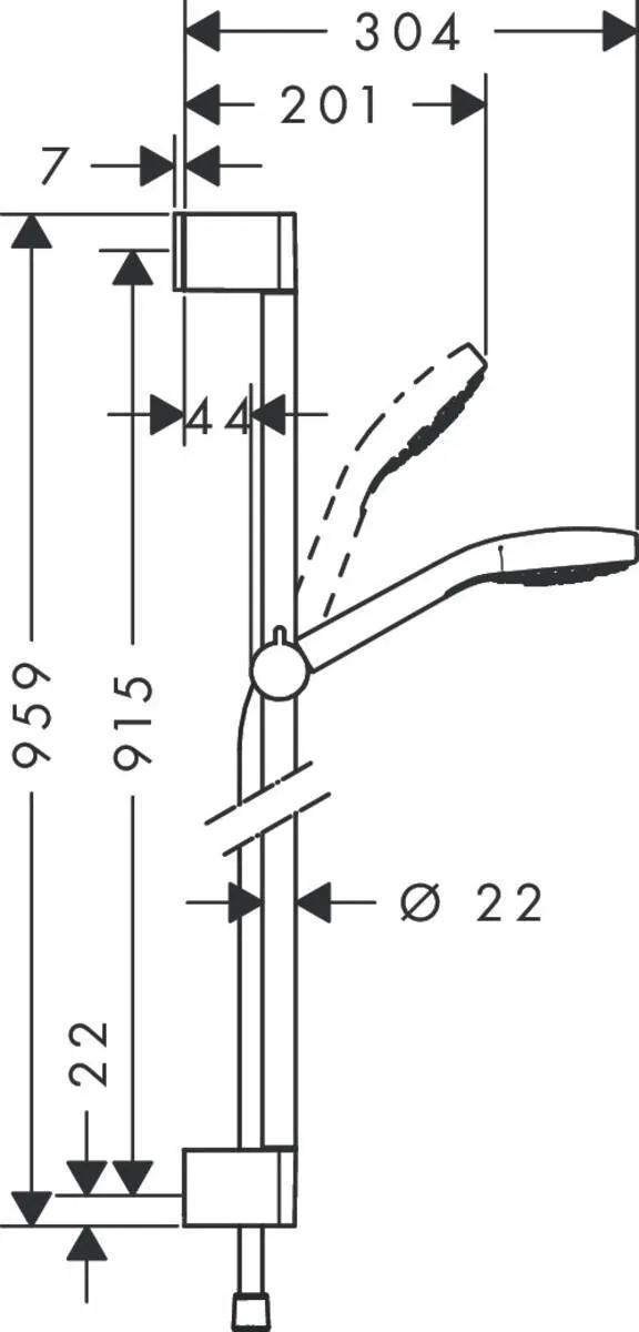 Cостоит из: ручной душ, душевая штанга, шланг для душа, ползунок размер душевого диска: 110 мм Тип струи: Rain, Turbo Rain, IntenseRain удобное переключение типов струи с помощью кнопки Select со стороны душа упорный подшипник, предотвращающий перекручивание душевого шланга угол наклона может изменяться до 45° максимальный расход воды при 3 бар: 9 л/мин хромированные настенные крепления из пластика