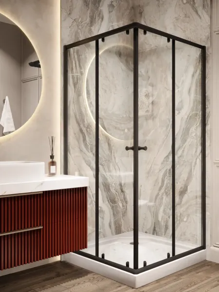 Душевой уголок Parly ZQ81B 80x80 смРазмер: 80х80х190 смКомпактная стильная модель с угловым входом. Прямые черные линии в сочетании с прозрачным стеклом подчеркивают современный дизайн. Раздвижные двери на одинарных роликах ходят плавно, не соскакивают с направляющих.Достоинства:Поддон белый из ABS-пластика, квадратный, с бортиком по периметру;