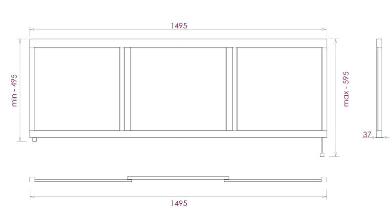 Ножки позволяют регулировать экран по высоте от 52 до 60 см, благодаря этому экран является универсальным и впишется в интерьер любой ванной комнаты.