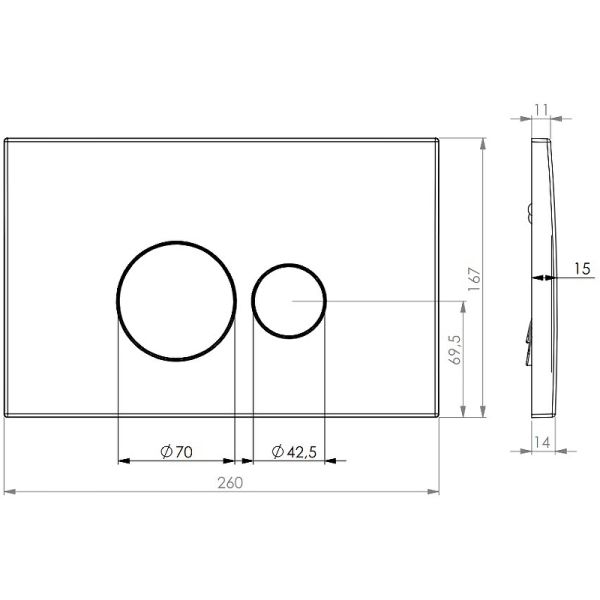 Размеры (ШхВхГ): 260x167x15 мм.