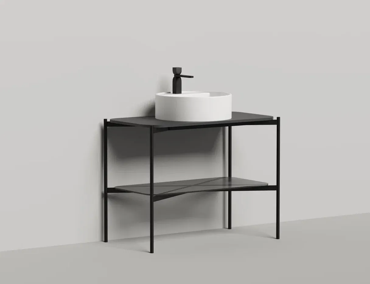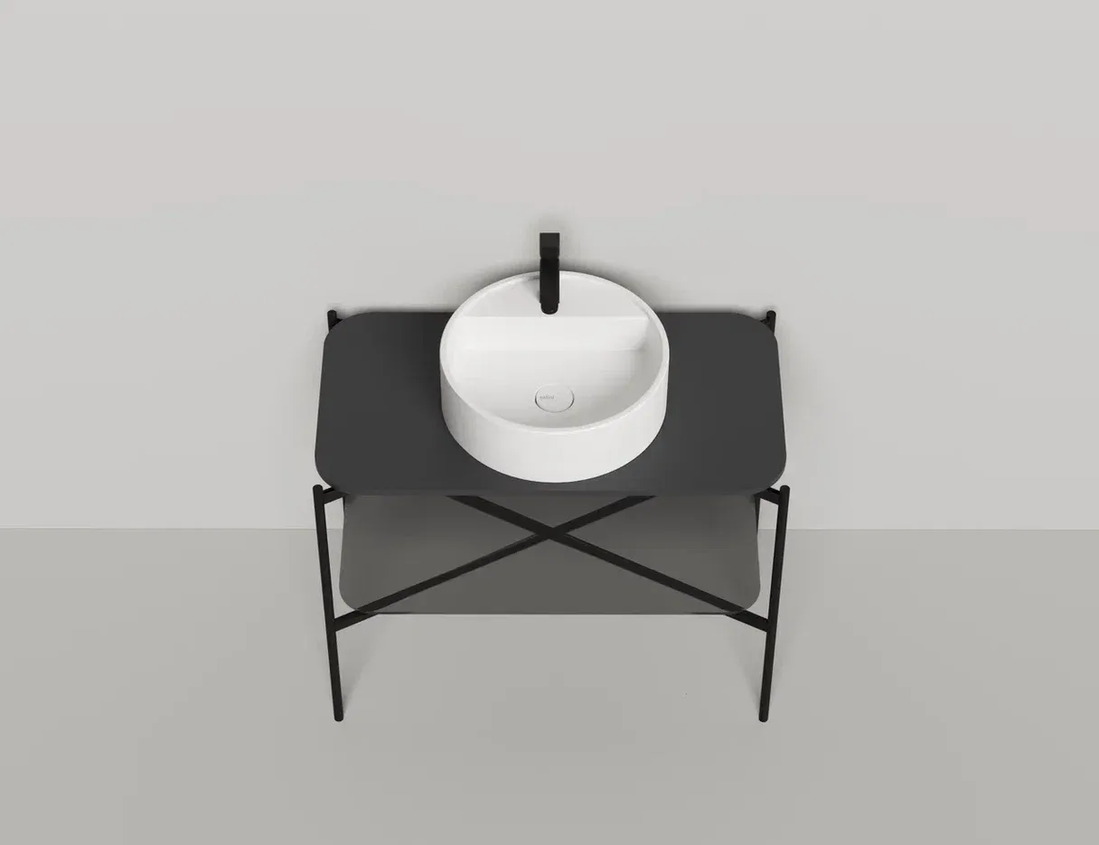 Консоль, предназначенная для установки накладных раковин из ассортимента Salini, изготовлена из металла, выполнена в благородном матовом чёрном цвете.