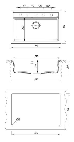 - Мои?ка для монтажа на столешницу с прямоугольнои? чашеи? в блок 80