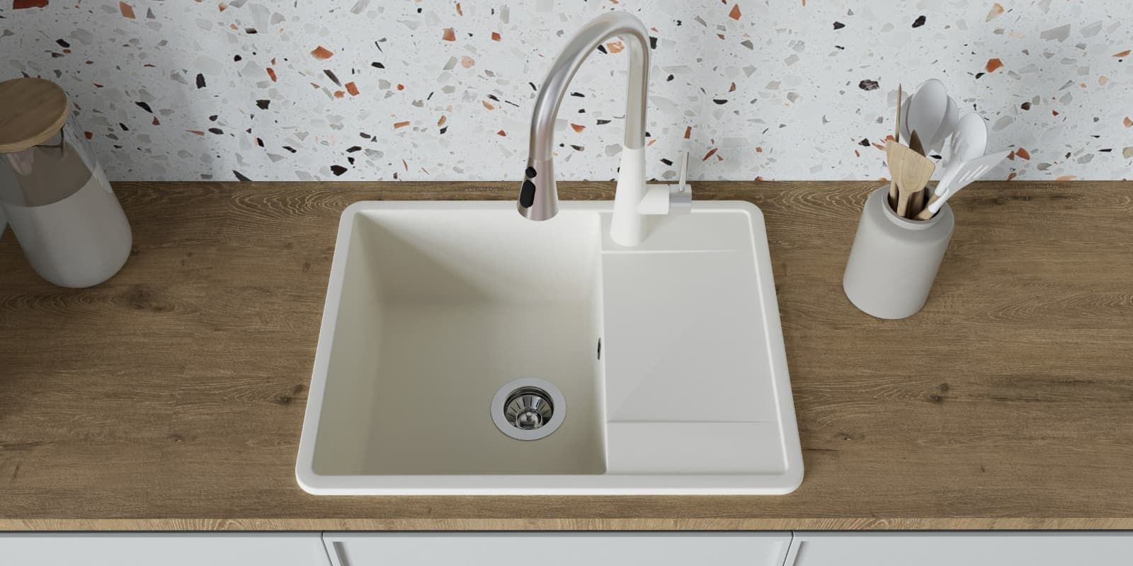 • Прямоугольная мойка с большой чашей для кухонного шкафа 50 см