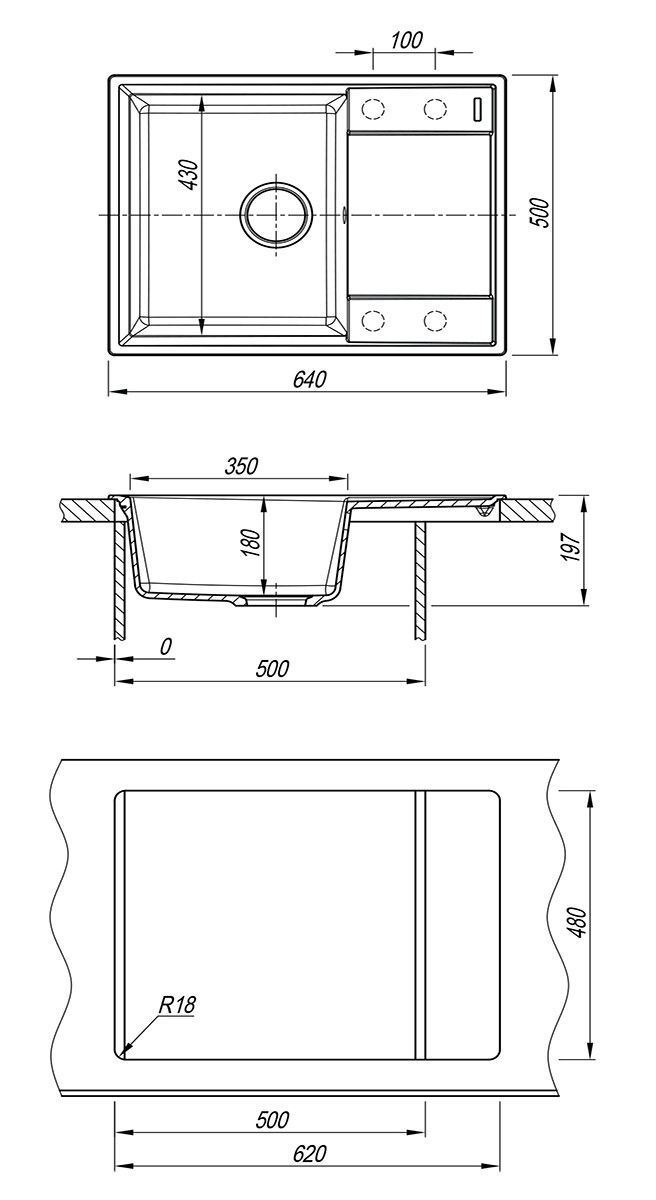 - Отверстия под смеситель:нет