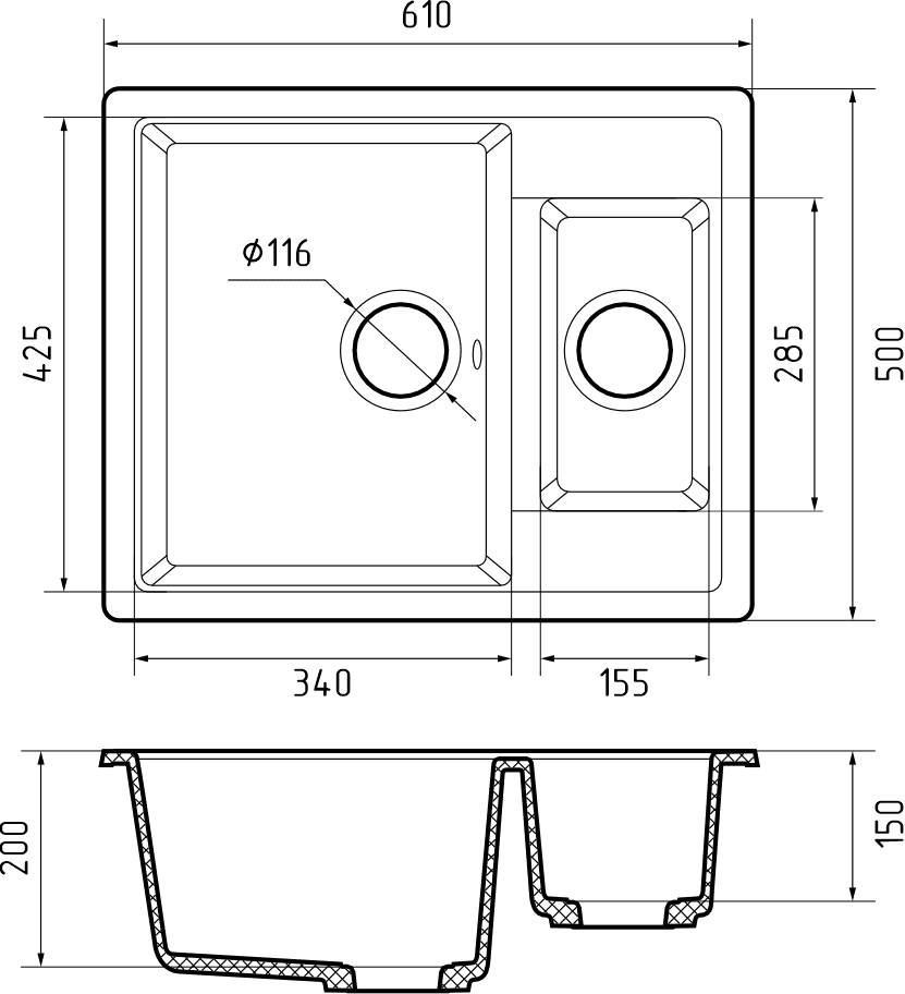 Общий размер: 610 * 500 мм