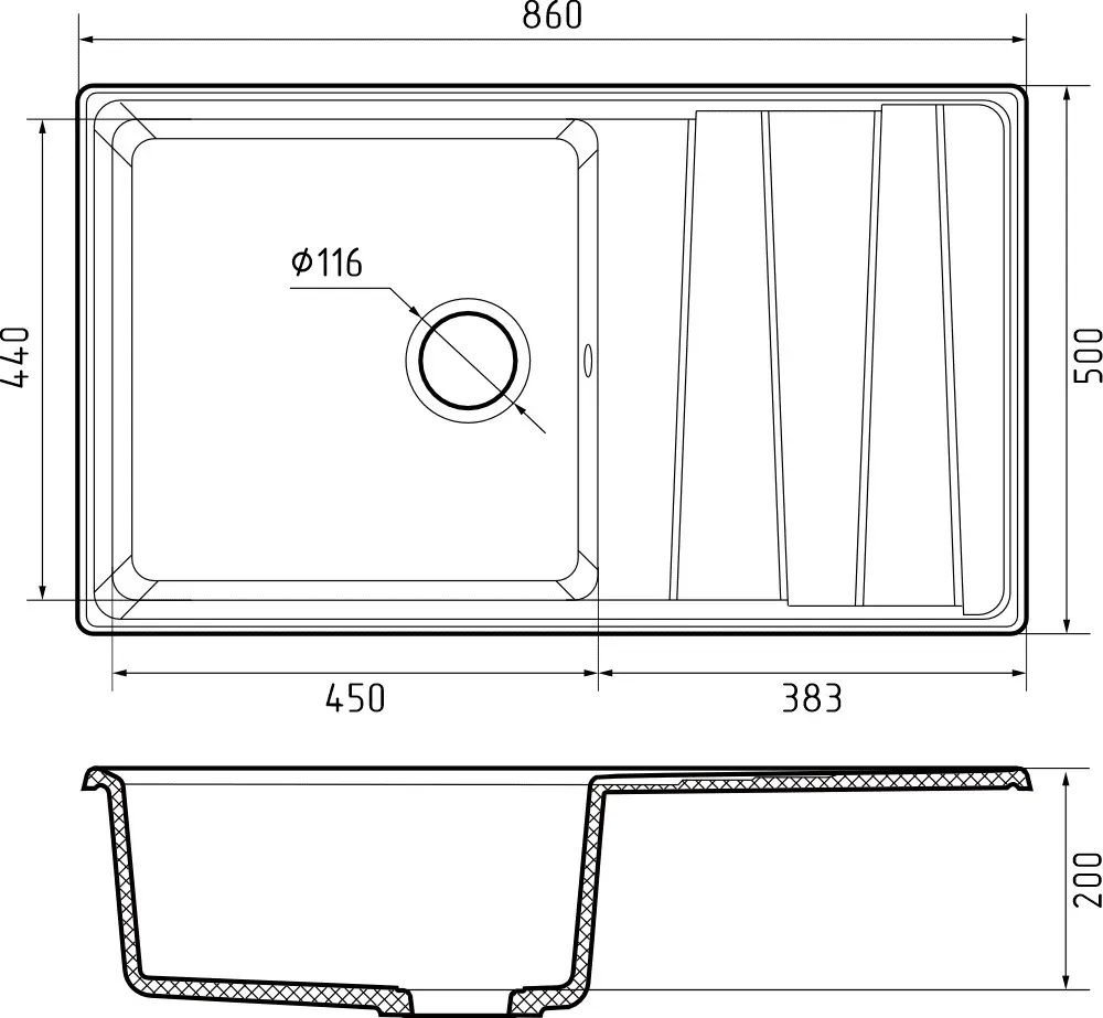 Общий размер: 860 * 500 мм