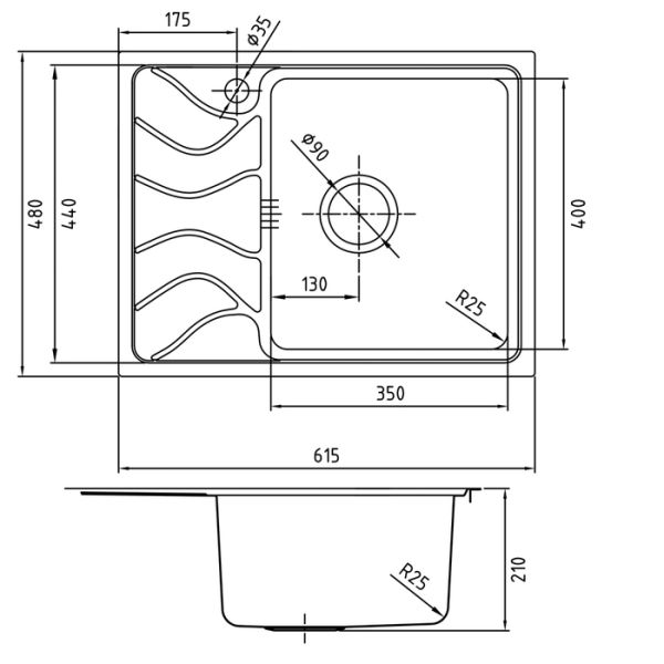 Материал: Нержавеющая сталь;размеры: 615x480x210; комплектация:уплотнительная прокладка, крепления;цвет сатин.Врезной тип монтажа;гарантия: 15 лет;1 чаша;крыло слева