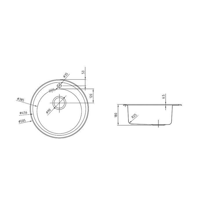 Комплектация: уплотнительная прокладка, крепления.;Размер мойки: 505 мм;Сталь: нержавеющая, 0,8 мм;Ширина шкафа: от 45 см;Глубина чаши: 180 мм