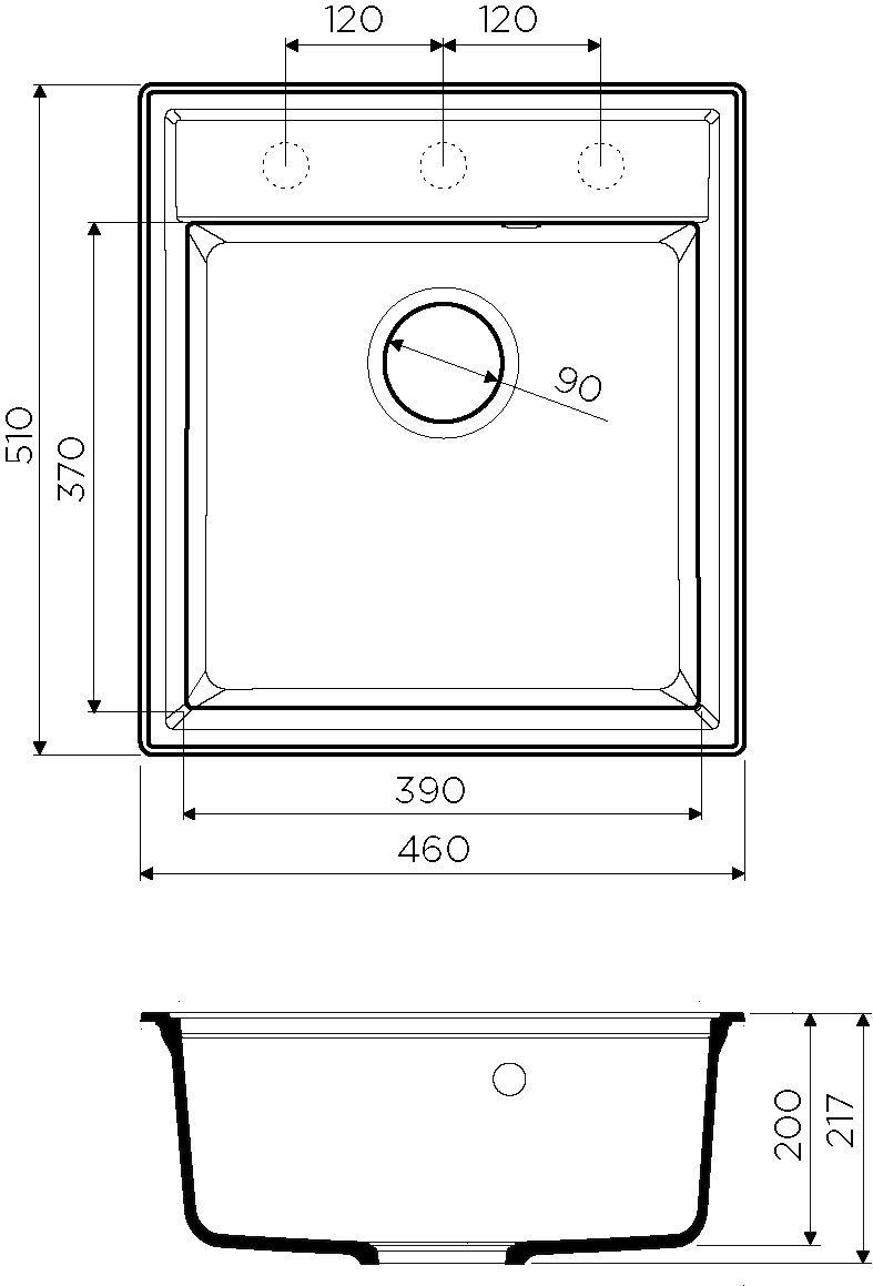 - Отверстия под смеситель:нет