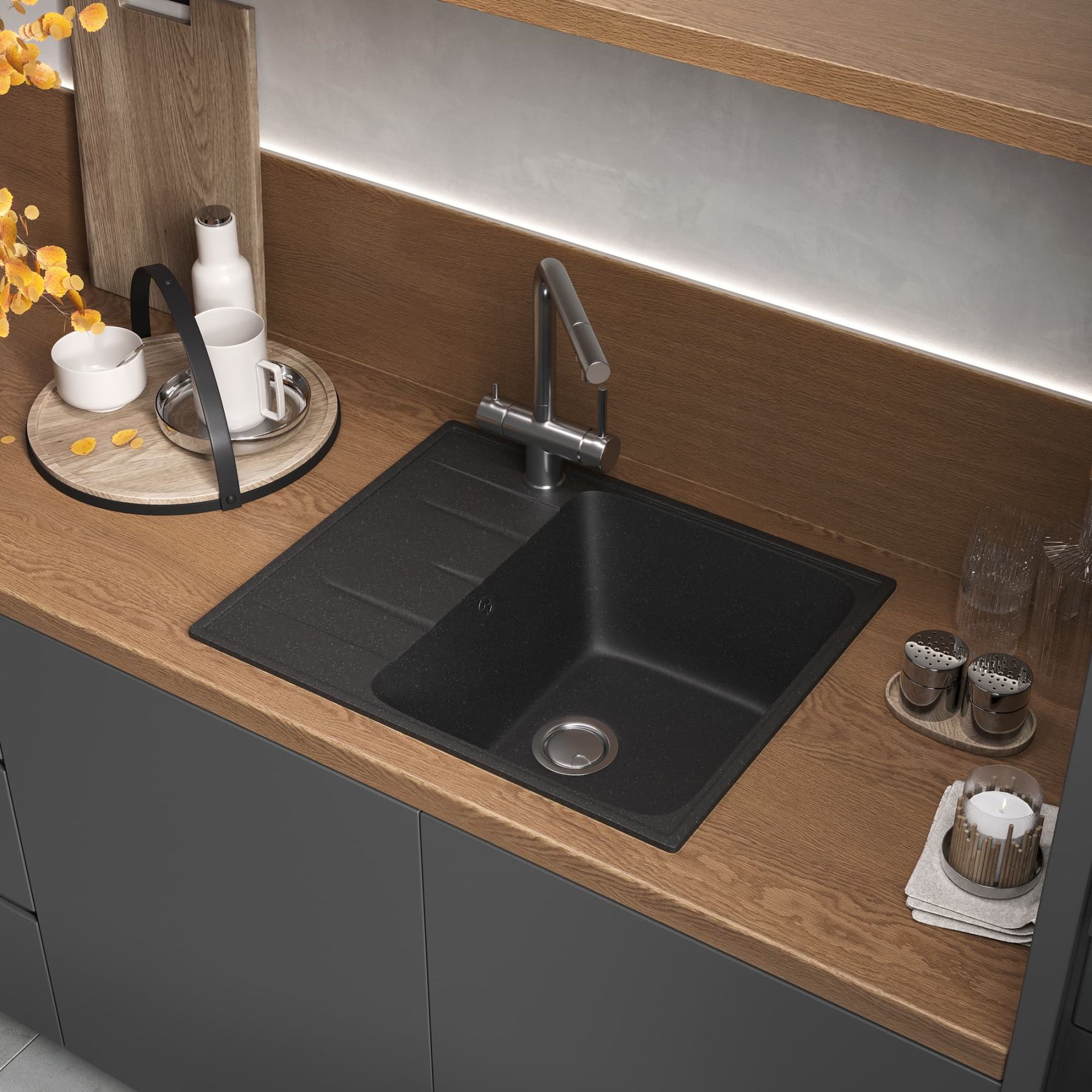Мойка кухонная Reflexion Plato 57-CL RX1457СL уголь