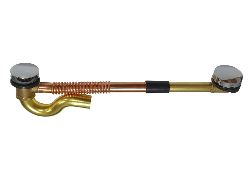 Материал: Корпус из латуни, гофрированная труба из красной меди, выпуск и нижний клапан - хромированная латунь