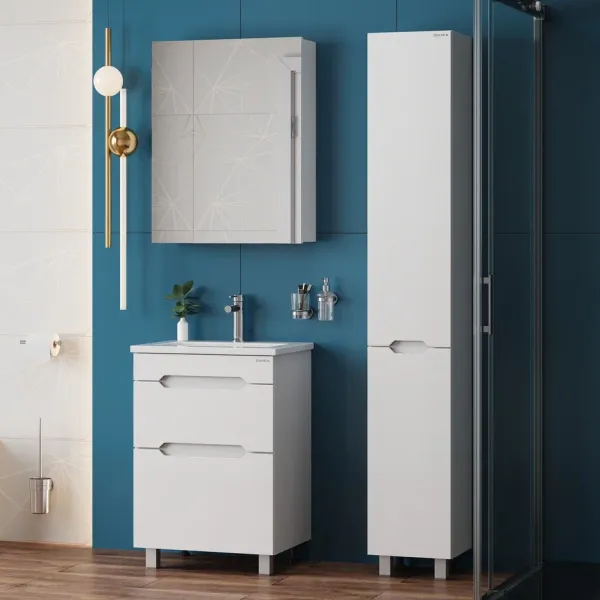 Напольный пенал для ванной комнаты Onika Айленд 30 сочетает в себе стильный минималистичный дизайн, белую глянцевую поверхность и высочайшее качество исполнения.