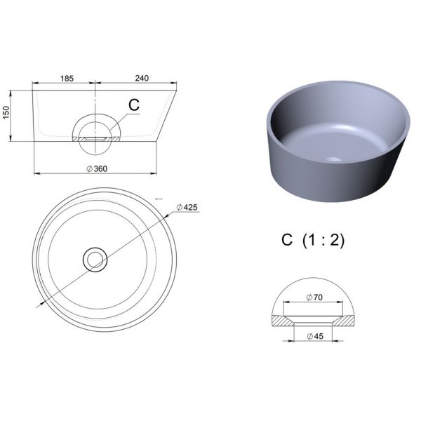 - диаметр: ø42,5 см;