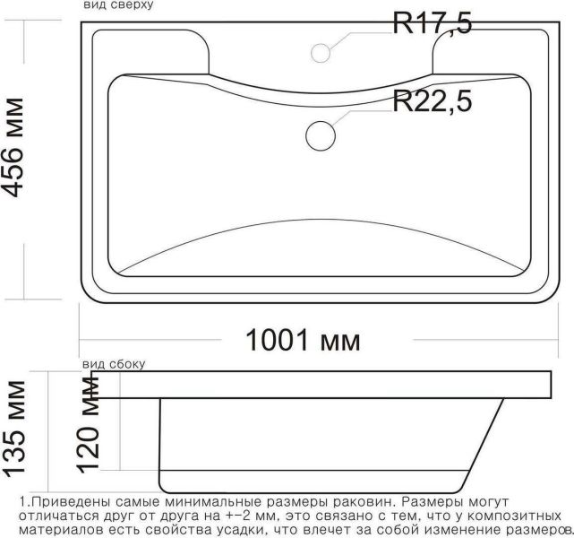 Размер, мм (ШxГxВ): 1001x456x135