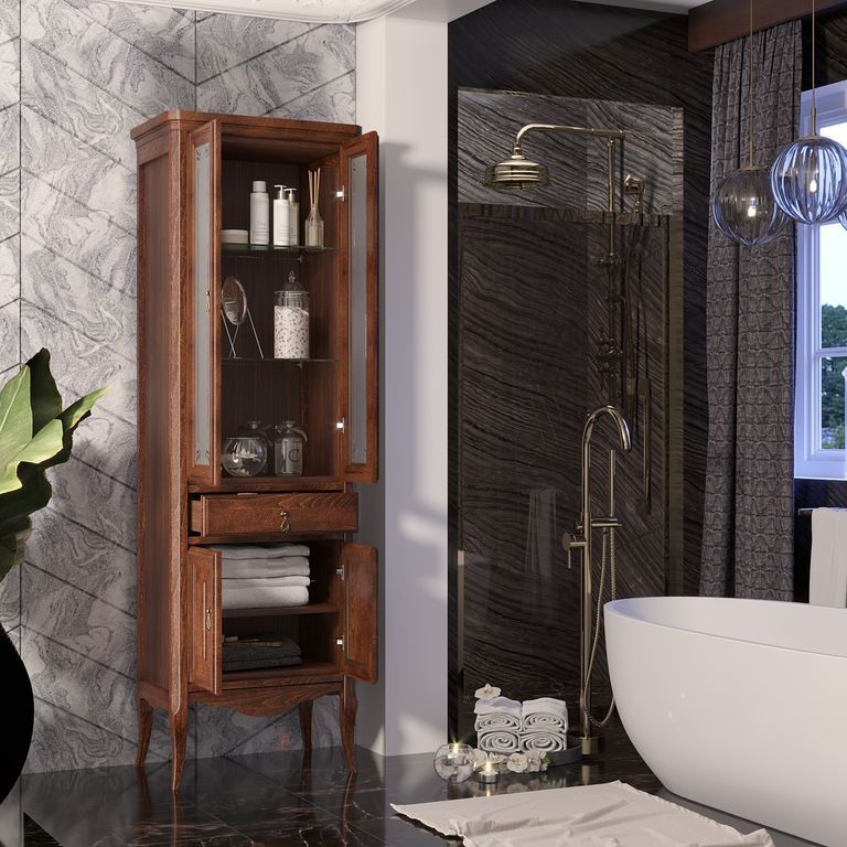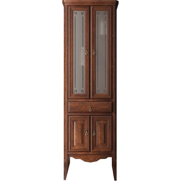 Шкаф-колонна Opadiris Лоренцо 55 00-00001803 Светлый орехВыполнен в классическом стиле с плавными изогнутыми формами и изящными слегка гнутыми ножками. Фасадные элементы украшены резными узорами, стекло матовое с узором.Ориентация: универсальная.