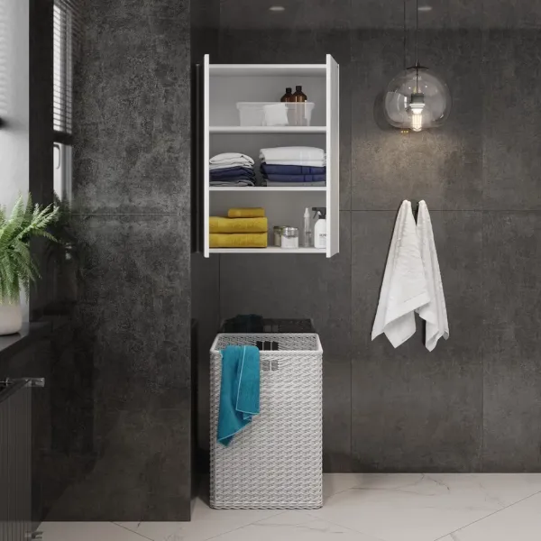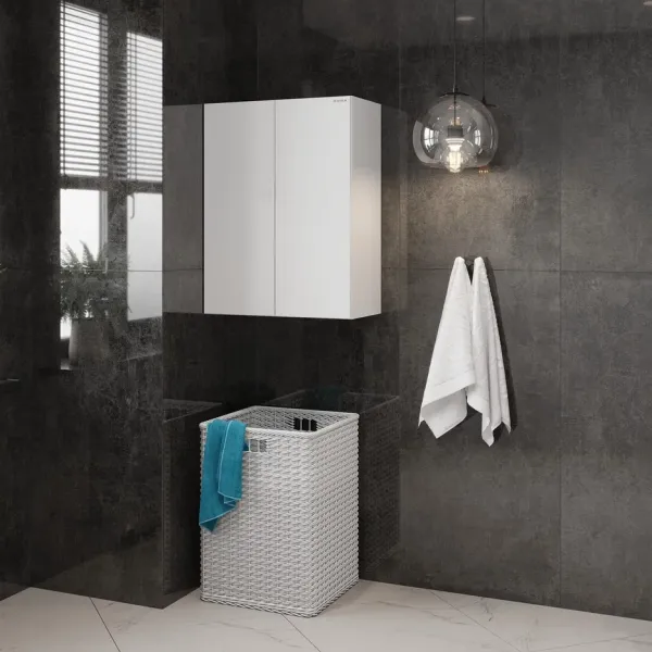 Навесной шкаф для ванной комнаты Onika Маркус 60, благодаря лаконичной прямоугольной форме и универсальному белому цвету, подойдет к любому интерьеру ванной комнаты и не займет много места.