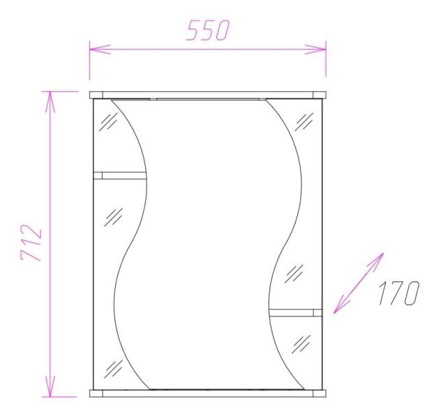 Навесной зеркальный шкаф ЛИЛИЯ 55 способен преобразить ванную комнату: эстетика изогнутой линии воплощается в мягкой волнообразной форме дверцы и исполняет роль основного выразительного элемента для интерьера помещения.