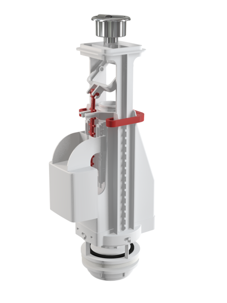- Конструкция позволяет регулировать высоту механизма в зависимости от высоты бачка