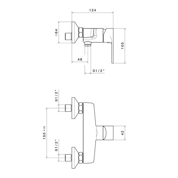 69355KM.21.018 Смеситель для душа PIANO настенный без излива, хром глянец