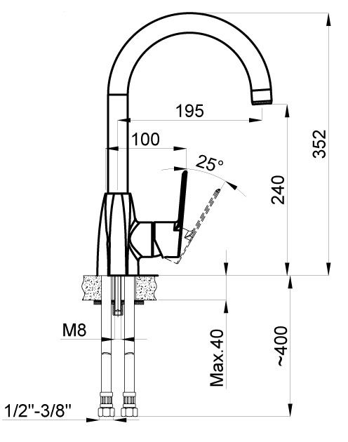 • Высота смесителя: