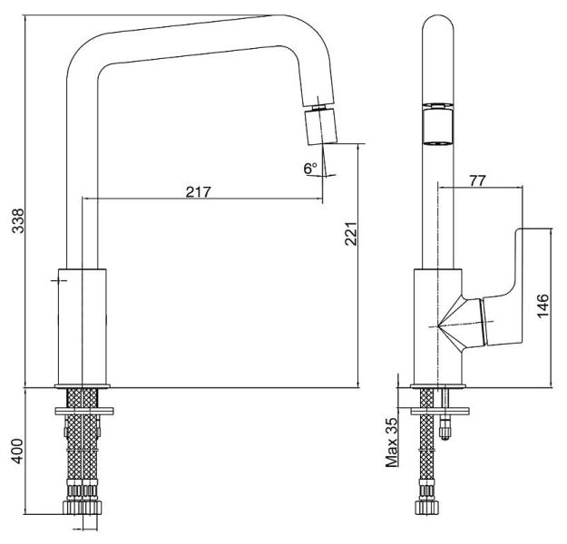 - Высота смесителя:33.8