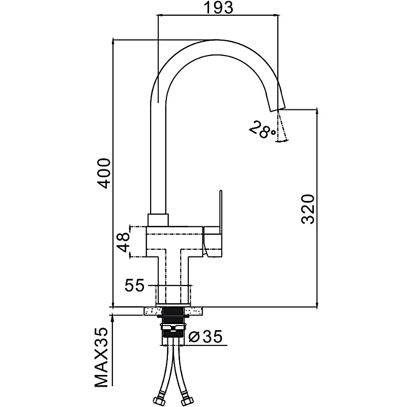 - Высота смесителя:40