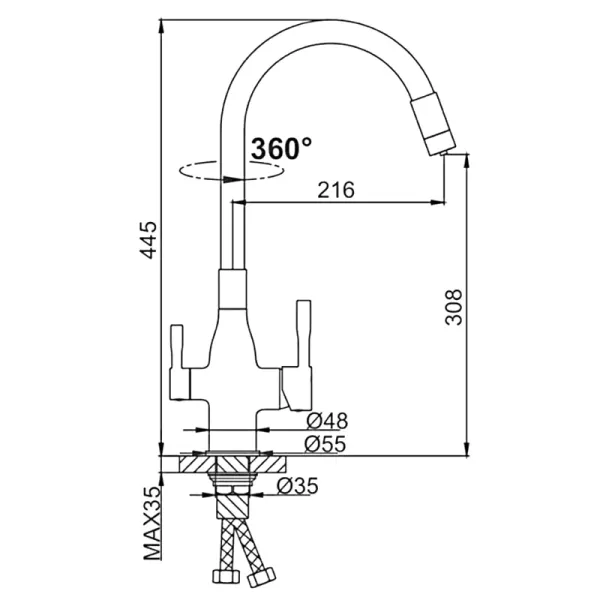 • Гибкий излив: