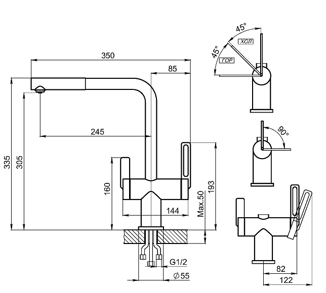 - Выдвижной излив:нет