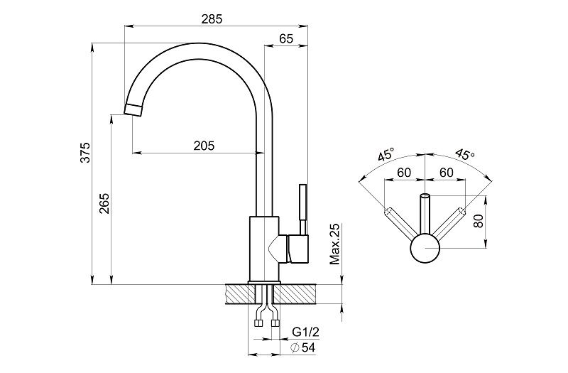 - Высота смесителя:37.5