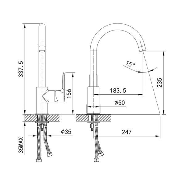 - Высота смесителя:33.8