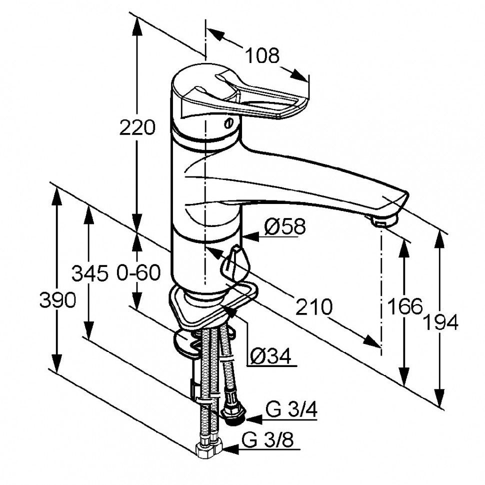 - гибкая подводка G 3/8
