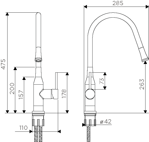 - Выдвижной излив:нет