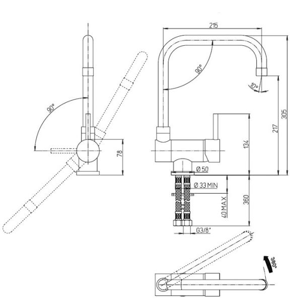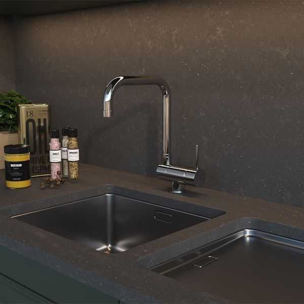 - Высокий корпус и поворотный излив дает больше возможностей при использовании на кухне.
