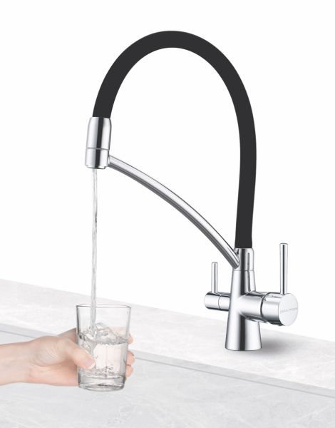 Смеситель под фильтр с гибким изливом, артикул Si213111-CRСмеситель для кухни однорычажный, с возможностью подключения фильтра питьевой воды, эластичный излив, керамический картридж 35 мм.Материал корпуса - латунь высокого качества. Многослойное, стойкое к истиранию покрытие. Долговечный керамический картридж диаметром 35 мм. Эластичный излив. Съемный пластиковый аэратор, который обеспечивает мягкую струю, ровный и экономичный поток воды. Простой монтаж, стандартное подключение.