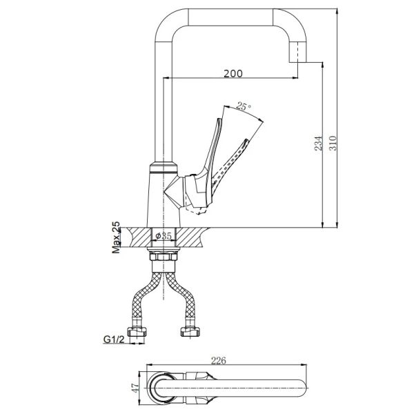 Смеситель для кухни RUSH арт. JA0735-23 с поворотным изливом из коллекции Jawa с металлической ручкой, изготовлен из высококачественной латуни и имеет рычажное управление.В смеситель установлен картридж D-35 с керамическими пластинами. Высота смесителя 310 мм. Излив поворотный 200 мм. Высота излива до аэратора 234 мм. Аэратор изготовлен из пластика с нержавеющим корпусом.В комплекте универсальная присоединительная группа для установки на горизонтальную поверхность, гибкая подводка с латунными гайками 40 см - 2шт, фум-лента, индивидуальный пакет, паспорт, гарантийный талон.