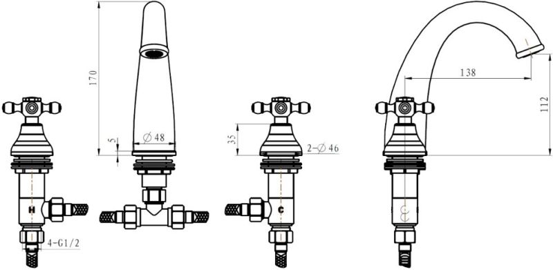 Смеситель Boheme Camelia 277 для раковины то, что нужно в современном интерьере. На вашу раковину отлично подойдет смеситель Boheme Camelia. Двухвентильные модели позволяют легко и удобно настроить температуру воды, используя для этого два крана.Латунь, стекло из которой произведен смеситель Boheme Camelia 277-Camelia отличается высокой прочностью и произведена без использования вредных компонентов. длина излива 13.8 см и высота излива 11.2 см - это оптимальные параметры у смесителя Boheme 277-Camelia, предотвращающие разбрызгивание. Излив Boheme Camelia так же оснащен функцией вращения, что значительно упростит использование смесителя. Конструкция модели Boheme Camelia позволяет отлично установить смеситель на раковину. Смеситель для раковины Boheme 277-Camelia выполнен в стиле ретро, что замечательно прослеживается в его форме. Марка Boheme, родиной которой, является Италия, создает смесители качества с высокотехнологичного оборудования, благодаря чему смесители отличаются долговечностью и надежностью. Смеситель Boheme Camelia 277 для раковины отличная покупка для вашей ванной комнаты.