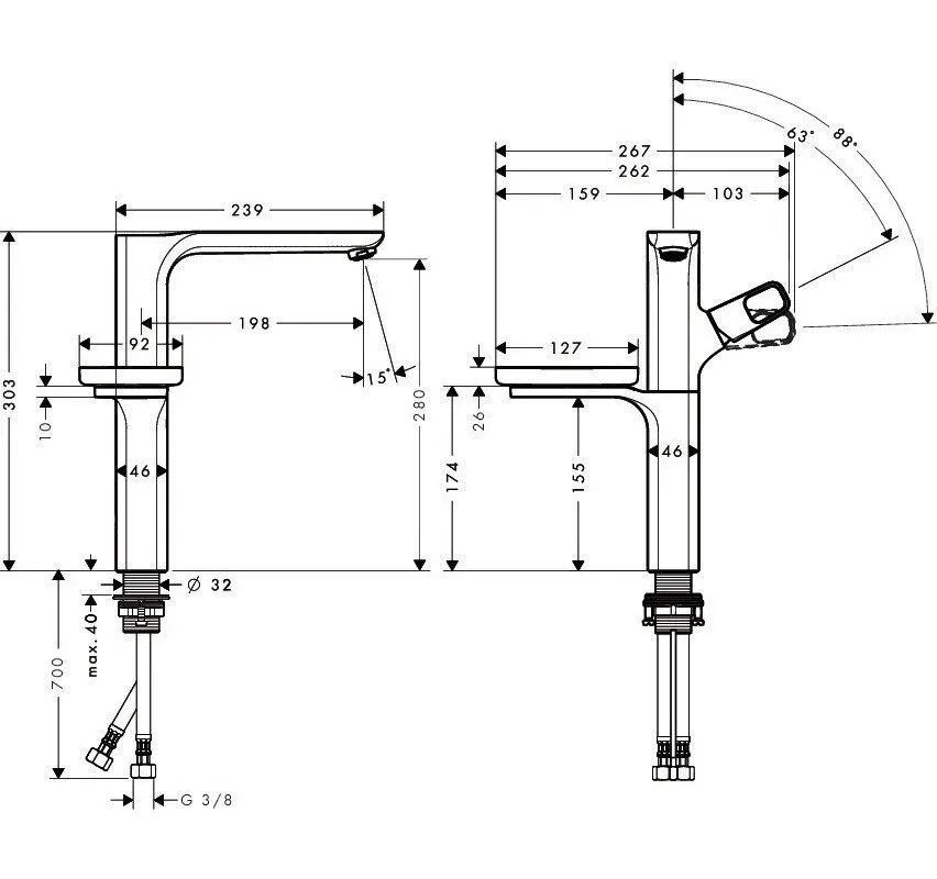 - Высота смесителя:30.3