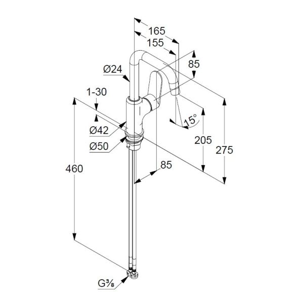 • Высота смесителя:
