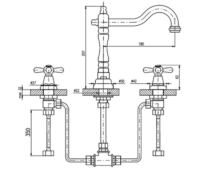 • Высота смесителя:
