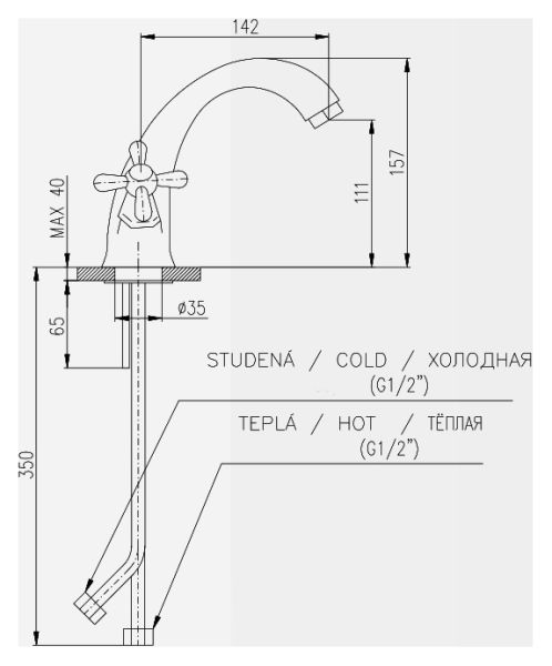 - Длина излива, см:14.2