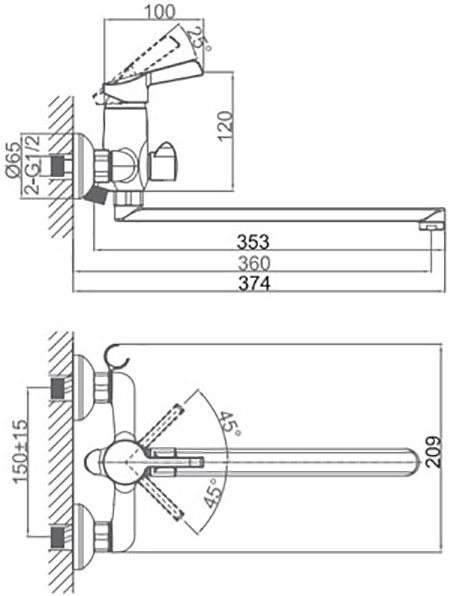 - Длина излива, см:36
